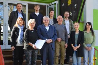 Die Grundschule „Thomas Müntzer“ in Sieglitz hat am Freitag, 28. März 2025, Fördermittel des Bundes in Höhe von 2,3 Millionen Euro erhalten. Mit einem Eigenanteil der Verbandsgemeinde Wethautal, der Trägerin der Einrichtung, von einer Million Euro soll in der Einrichtung ein Anbau mit einem Multifunktionsraum entstehen. Landrat Götz Ulrich übergab den Bescheid an Verbandsbürgermeisterin Kerstin Beckmann, Bodo Zier, Bürgermeister der Gemeinde Molauer Land, und Schulleiterin Stefanie Becker.
