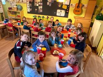 Im März starteten wir kleinen Strolche in der KITA wieder einen Farbentag. Diesmal viel die Entscheidung auf die Grundfarben “ROT“ und „BLAU“. Jeder von uns kleinen Strolche konnte sich an diesem Tag aussuchen, ob er in einem roten oder blauen Outfit sich zeigen wollte. In den Gruppenräumen hatten unsere Erzieherinnen die Tische mit roten und blauen Servietten eingedeckt, auch Luftballons, Teller und Tassen hatten an diesem Tag die Farben „ROT“ und „BLAU“. Nach dem Frühstück eröffneten wir mit dem Luftballontanz die Farbenspiele. Beim Rätselraten - Was ist rot und was ist blau,? beim Liedersingen „Rot, rot, rot sind alle meine Kleider…“