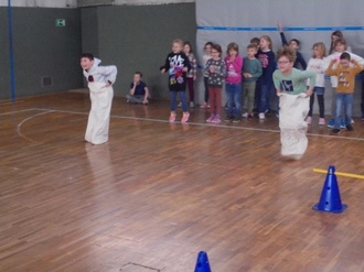 An den folgenden Tagen wurden dann tolle Sachen in den Gruppen veranstaltet. Die 3. und 4. Klasse führte ein Ostergeländespiel durch. Auf dem Schulhof mussten 120 Pappeier gefunden werden und für jedes Ei gab es dann eine Rätselkarte. Nach Erfüllung der Aufgaben konnten sich alle Kinder eine kleine Überraschung abholen. Die Jungen und Mädchen der 1. und 2. Klasse gestalteten eine Klanggeschichte mit vielen Instrumenten und bastelten kleine Hasen.