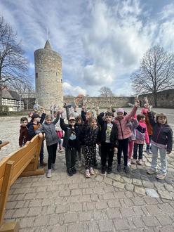 Ja wer hoppelt denn da über den Schulhof? Kein anderer, als der Osterhase hat heute kleine Präsente für die Osterfelder Hortkinder im Schulhof versteckt.