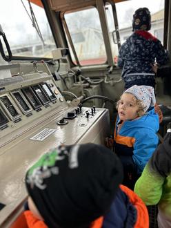 Ein weiterer Höhepunkt wartete im Inneren der Lokomotiven: Wir durften in verschiedene Führerstände klettern, Knöpfe drücken und uns wie echte Lokführer fühlen. Der absolute Höhepunkt war schließlich die Fahrt in der orangefarbenen Rangierlok – ein Erlebnis, das die wir so schnell nicht vergessen werden!
