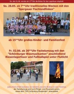 Am Freitag, dem 02.06. sorgt dann ein Fackelumzug mit Begleitung einer Blaskapelle durch den Ort für eine ganz besondere Atmosphäre. Und im Anschluss findet dann unter Flutlicht ein spannendes Fußballspiel der Jugend statt. Auch hier wird für das leibliche Wohl gesorgt.