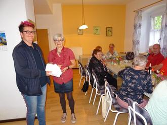 Nein, es ist kein „vordrängeln“ meint Martina Morawe, als sie im Namen der Senioren die Spendenbriefe für eine Parkbank an die Heimatvereinsvorsitzende übergibt.