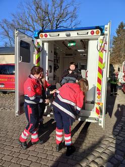 Viel Interesse wurde den Mitarbeiterinnen der Malteser und ihrem Krankenwagen entgegengebracht. Für viele Kinder war es das erste Mal, dass sie einen Rettungswagen von innen bestaunen durften. Spielerisch wurden Erste-Hilfe-Maßnahmen geübt, wie zum Beispiel das Anbringen von Kopfverbänden oder die Herzdruckmassage.
