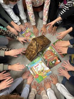 Anschließend warteten abwechslungsreiche Mitmachstationen: In Rätseln und Suchbildern erkundeten die Kinder einen nächtlichen Wald, und in geheimnisvollen Fühlkisten ertasteten sie Eicheln, Rinde, ein Geweih, Nüsse und Zapfen. Ein weiteres Highlight war die Untersuchung einer Baumscheibe. Die Schülerinnen und Schüler zählten aufmerksam die Jahresringe und bestimmten so das Alter des Baumes - eine echte Entdeckungsreise in die Vergangenheit der Natur.