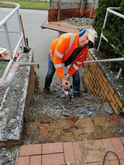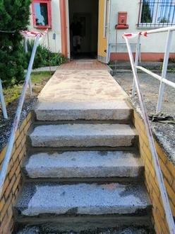 Nach längerem Anlauf ist es dem Ortschaftsrat gelungen mit Helfern und Sponsoren die marode Eingangstreppe zum Dorfgemeinschaftshaus (Feuerwehrstützpunkt) wieder in neuem Glanz erstrahlen zu lassen.