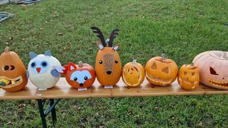 An vielen Mitmachstationen konnten sich Kinder und alle Besucher die Zeit vertreiben. So gab es verschiedene Halloween-Bastelstationen für schaurig Schönes, wer wollte konnte das Tanzbein schwingen beim Knicklichter- und Schattentanz, als Team konnten sich Familien beim Eltern-Kind-Spiel oder beim Kürbislauf beweisen und auch beim Kinderschminken war ein reger Andrang. Vom Dachboden bis zum Keller wurde jede Etage liebevoll geschmückt und hergerichtet und bot eine ganze Menge für jeden Besucher! Die fleißigen Hexen der Hexenküche sorgten für das leibliche Wohl und zogen mit Getränken und einer wohlschmeckenden Kürbissuppe viele Geister, Gespenster und Gruselwesen in ihren Bann. Dafür auch ein großes Dankeschön an den Schulförderverein für deren Einsatz. Um 18:50 Uhr versammelten sich alle Kinder, Besucher und auch Lehrer am neuen Insektenhotel, um Kürbisse und Kostüme zu prämieren. Zum Glück entschieden Lose, denn ein jeder Kürbis sowie ein jedes Kostüm war einzigartig, kreativ und sehr gelungen! Unser Fest ließen zum Schluss alle Grundschüler und Lehrer mit einem gemeinsamen Lied ausklingen. Ein gelungenes Herbst-Halloweenfest ließ alle kleinen und großen Besucher glücklich und zufrieden nach Hause gehen…