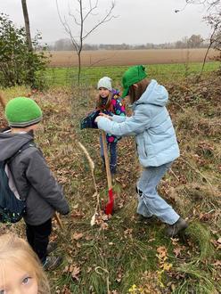 Am Donnerstag, dem 7.11.24 waren alle Schüler der SCHKOLA Gersdorf unterwegs, um im Wald rund um den Sportplatz mit dem Revierförster Herrn Michael Weber Kastanienbäume zu pflanzen. Diese hatte eine Mutter von SCHKOLA Kindern im Frühjahr zufällig bei einer Gartengestaltungsaktion ihrer Nachbarn entdeckt, gerettet und weiter gepflegt. Nun bereichern sie die Natur in Gersdorf und können in einigen Jahren auch Gersdorfer Kindern sowie den Waldtieren im Herbst mit ihren Früchten Freude bereiten.