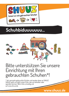 Daher würden wir uns freuen, wenn Sie uns mit guten “alten“, zu kleinen oder nicht mehr benötigten Schuhen unterstützen und diese in der Villa Kunterbunt abgeben und somit unseren Kindergarten unterstützen. Im Bereich der Villa Kunterbunt wird Ihnen hierfür ab Dezember ein Sammelkarton bereit gestellt.