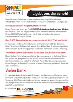 Bereits in der Vergangenheit wurden in der Villa Kunterbunt „alte“ Schuhe gesammelt um gleich dreifach nachhaltig zu handeln: für die Umwelt, für den Kindergarten und für die zahlreichen Menschen weltweit.