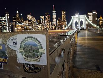 Familie Kupke aus Jauernick-Buschbach hat in den letzten Winterferien eine Woche in New York verbracht. Freunde der Familie haben für diese Reise Aufkleber mit einem Gruß aus Jauernick-Buschbach erstellt. Bei ihren Ausflügen auf Liberty Island mit der Skyline von Manhatten im Hintergrund sowie dem Besuch der Brooklyn Bridge konnte Familie Kupke dann jeweils einen Gruß aus der Heimat hinterlassen.