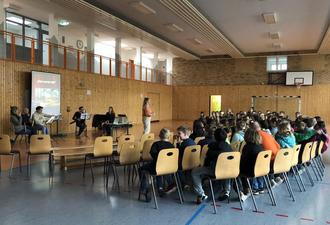 Am 25. April 2024 fand in der Turnhalle in Markersdorf ein zweites Schülerkonzert für die 3. und 4. Klassen statt. Auf dem Programm stand das musikalische Märchen „Peter und der Wolf“. Die Handlung ist den Kindern ja schon aus dem Musikunterricht bekannt. Die Instrumente aber einmal im Konzert zu erleben, ist natürlich viel interessanter. Eigentlich hat der Komponist Sergei Prokofjew die Märchenerzählung mit einem großen Orchester musikalisch umrahmt. Ein speziell arrangiertes Bläserquintett (Querflöte, Klarinette, Oboe, Horn, Fagott) führte nun die Kinder durch Musik und Handlung. Auch diese kleinere Besetzung ließ keine Wünsche offen und war ein fantastisches musikalisches Erlebnis für alle Zuhörer.