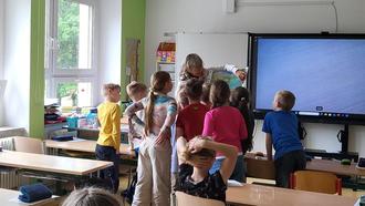 Unser diesjähriges geplantes Sportfest am 28. Mai sollte ein Wettkampf im Weitsprung, Sprint, Weitwurf und Staffellauf werden. Alle Schüler bereiteten sich im Sportunterricht auf diese leichtathletischen Disziplinen vor und freuten sich schon riesig darauf, sich in den Sportarten zu messen und einen der begehrten Siegerplätze zu erreichen. Leider machte uns das Wetter einen Strich durch die Rechnung. Der Stationsbetrieb wurde geändert und so konnten wir in kleinen Gruppen beim Ball spielen, bei Fitnessübungen und anderen kleinen sportlichen Aktivitäten unseren Teamgeist beweisen. Für unsere 3. Klassen stand eine weitere spannende Mannschaftssportart auf dem Plan. Sie wurden bei Herrn Adam, unserem diesjährigen Übungsleiter im GTA „Handball“, aktiv im Training gefordert. Vielleicht entscheidet sich der ein oder andere für diese Sportart im Verein. Neben dem sportlichen Teil hatten alle viel Spaß und wir genossen gern unser gesundes Frühstück. Entspannung stand auch bei jedem auf dem Plan. Mit Frau Poitschke und ihren Geschichten lernten wir, wie wir uns einfach ausruhen und eine Pause im Alltag einlegen können. Auch die Lesepatin Frau Mandel lud uns mit dem Kinderbuch „Schnuddel pflanzt einen Gummibärenbaum“ von Janosch zum Träumen ein.