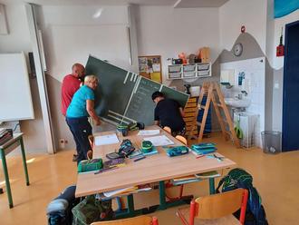 Die intensive Vor- und Nachbereitung der Räume dafür, haben wir unserem stets einsatzbereiten Hausmeister Herrn Wilhelmi zu verdanken. Tatkräftige Unterstützung bekam er von den Schülerinnen und Schüler der ehemaligen Klasse 4b, Frau Ebert, der ehrenamtlich Tätigen Frau Poitschke, von Abdul und dem Bauhof Markersdorf.