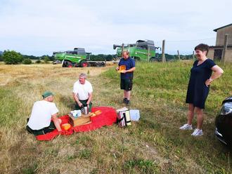 Die Chefin der Agrargenossenschaft belohnte die Arbeit der Männer am Ende mit einem zünftigen Abendessen auf dem Feld.