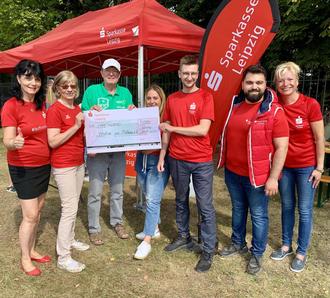 Der Leipziger Stadtteil Mölkau beging am letzten August-Wochenende sein 700-jähriges Bestehen. Zu den Gästen der Geburtstagsfeier zählte auch die Sparkasse Leipzig. Neben allerhand kleineren Präsenten hatte das sechsköpfige Berater-Team aus dem benachbarten Beratungs-Center Anger-Crottendorf ein besonderes Geschenk für die Initiative pro Mölkau e. V. als Veranstalter