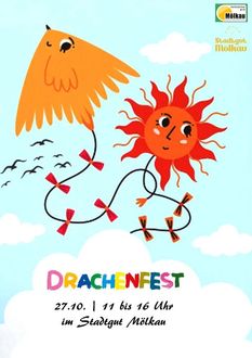 nicht vergessen: Am 27. Oktober 2024 findet das erste Mölkauer Drachenfest im Stadtgut Mölkau statt! Euch erwartet ein buntes Programm rund um das Thema Drachen – von Drachen steigen lassen über Reparaturen und Basteln bis hin zu einem kleinen Drachenwettbewerb. Wer keinen eigenen Drachen hat oder sich inspirieren lassen möchte, kann vor Ort auch Drachen kaufen.
