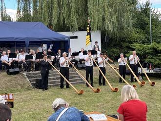 Es gab auch Höhepunkte, wie eine Pferdekutsche von der Firma Hilpert, eine Schweizer Brassbänd, die auch Alphörner vorführte, Beiträge von Kindern der Grundschule, unseren DJ Duck und weitere Attraktionen.