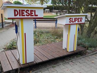 Heute möchten wir unsere niegelnagelneue Tankstelle vorstellen, die von nun an zum Spielen einlädt! Sie umfasst zwei Säulen, Benzin und Diesel. Unsere Kinder können ihre PKWs, Motorräder und Taxis von Montag bis Freitag zwischen 6.00 und 17.00 Uhr volltanken.