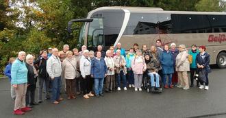 Alle waren neugierig auf die angekündigten Ziele, und so ging die Fahrt pünktlich 7:00 Uhr los. Ein gut gelaunter Busfahrer begrüßte die Gäste mit einem flotten Spruch und der Himmel schloss vorläufig seine Schleusen.