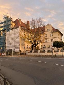 Ganz still und unbemerkt lebt ein Hundertjähriges unter uns. Unser Gemeindeamt hat dieses gesegnete Alter erreicht. Wie man zurzeit sieht, soll es ein neues altes Gewand bekommen. Der Gewandmeister, das Amt für Denkmalschutz, hat herausgefunden, dass die Fassade ursprünglich mal einen Blauton hatte und so soll es auch wieder hergestellt werden. Lassen wir uns mal überraschen ...