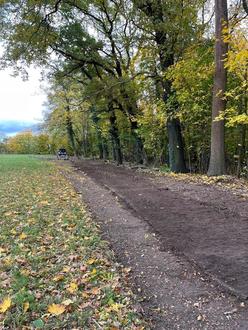 Am Tempelberg wurde mit Hilfe eines kleinen Baggers und mächtig viel „manpower“ von Hand, begonnen die Spitzahornsprösslinge zu dezimieren. Das ist eine schwierige, aber notwendige Arbeit, um alte Sichtachsen wieder erlebbar zu machen. Auch die Parkwege wurden gefegt. Der Winter kann also kommen.