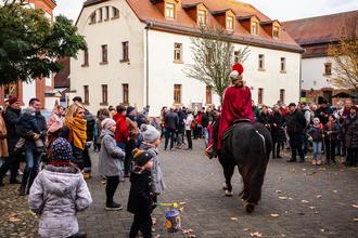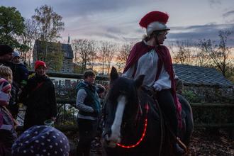 Und natürlich fand auch der Martinsumzug, angeführt von St. Martin auf seinem Pferd, statt. Alle Besucher waren eingeladen, die Runde durch den Park und das Gut mitzugehen.