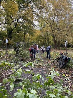 Am 25. Oktober trafen sich einige Mitglieder des Parkaktivs zum nächsten Einsatz. Diesmal ging es dem Spitzahorn am Tempelberg und entlang des Bardenganges (Kastanienallee) großflächig an die Wäsche.