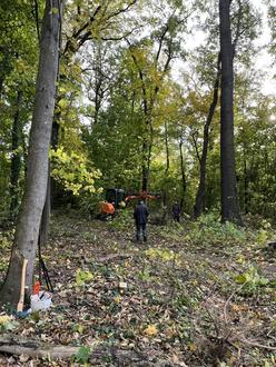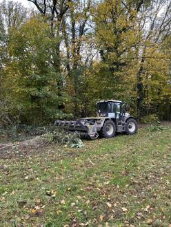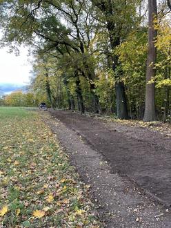 Am 21.10. 2025 erfolgte der erste Testlauf mit der Funkraupe. Das war die Vorbereitung für die Frühjahrseinsaat von neuem Grassamen entlang der Wiesenränder. Diese Funkraupe mit einem Vorsatz als Rodungsfräse ist ausgesprochen effektiv und schafft viel Fläche in kürzester Zeit. Diese Auftragserteilung hat sich sehr gelohnt.