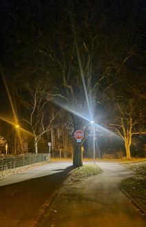 Der Einmündungsbereich Schulstraße/Zweinaundorfer Str. fristete bei Dunkelheit aufgrund ungünstiger Beleuchtung sprichwörtlich ein Schattendasein. Die als Schulweg vor allem von Schülern der Grund- und Mittelschule genutzten Querung barg das Risiko, beim Passieren von einbiegenden Autofahrern übersehen zu werden. Seit kurzem ist der blinde Fleck nun weg – getreu dem Motto „Wer Licht schenkt, kennt das eigene Dunkel.“ (Hartmut Weinhold)