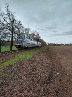 Blick auf den Bahndamm am Engelsdorfer Weg. Der einstige „Schwarze Weg“ an den Feldern entlang der Eisenbahnlinie nach Chemnitz war seit Jahren überwuchert von Brombeersträuchern und lag sprichwörtlich im Dornröschenschlaf. Das Frühjahr und damit die Brutzeit der Vögel steht bevor, weshalb hier wie auch in den stadtweiten Grünanlagen vermehrt Rückschnitte erfolgen. Nicht überall trifft der augenscheinlich rigorose Eingriff auf Zuspruch. Über Art und Umfang der Maßnahmen entscheidet jedoch der jeweilige Flächeneigentümer – die Stadt Leipzig (Amt für Stadtgrün und Gewässer) oder wie hier die Deutsche Bahn AG.
