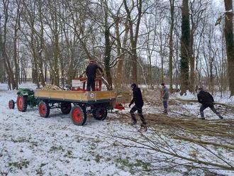 Die abgeschnittenen Gehölze werden zeitnah gehäckselt oder zu Benjeshecken aufgeschichtet und bieten somit Tieren zukünftig einen Unterschlupf.
