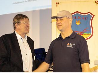Geehrt für sein jahrelanges Engagement im DRK Ortsverein sowie für sein Wirken innerhalb der Kirchgemeinde. Die Laudatio hielt Ines Meister, DRK OV Mölkau-Holzhausen.