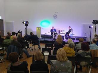In der zweiten Veranstaltung stellte die aus Dresden stammende Autorin Wiete Lenk ihren Roman „Zwischen den Zeiten leuchtet der Schnee“ im Ratssaal des Gemeindeamtes Mölkau vor. Sie las drei längere Kapitel aus ihrem Buch und beantwortete dazwischen die Fragen des Moderators Steffen Birnbaum. Er sagte, dass er das Buch auch als ein Plädoyer für den Frieden gelesen hat und Wiete Lenk antwortete. „Ja, unbedingt“.