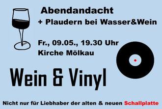 | 09. Mai | 19.30 Uhr | Abendandacht „Wein & Vinyl“ in Mölkau |