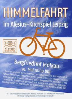 | 29. Mai | 10.00 Uhr | Gottesdienst auf dem Bergfriedhof Mölkau mit anschl. Fahrradtour |
