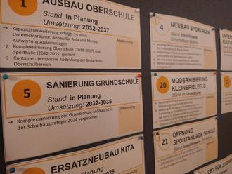 Zu jedem Themenkomplex fanden sich Pinnwände mit zahlreichen Vorschlägen und angedachten bzw. laufenden Maßnahmen, die in großen Ortsplänen übersichtlich gekennzeichnet waren. Dabei flossen auch die Ergebnisse aus der Befragung „Leben in der Ortschaft“ (2023) mit ein, an der damals zufällig ausgewählte Bürger teilnehmen konnten.