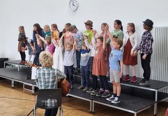 Die Freude am Musizieren und Singen der verschiedenen Lieder war den ca. 20 Kinder sehr gut anzusehen. Dies wurde durch die vielen Zuschauer mit langem Beifall gewürdigt.