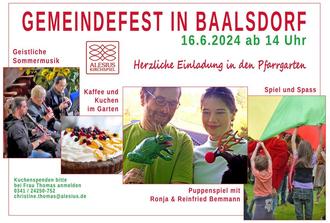 | 16. Juni | 14.00 Uhr | Geistliche Sommermusik mit Gemeindefest in Baalsdorf |
