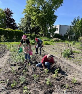 Die Initiative pro Mölkau, e.V. hat in den Angergärten an der Engelsdorfer Straße fleißig umgegraben, gemäht und gepflanzt.
