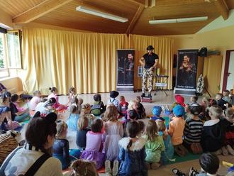 Auf unserem Programm standen einige Höhepunkte. Begonnen haben wir mit einer Parade zum Einmarschieren und läuteten damit den Start in unser Fest ein. Als Höhepunkt für die Kinder ging es weiter mit dem Zauberer „Stefan Gärtner“, der die Kinder mit seinen Tricks beeindrucken konnte. Auch die Luftballontiere nach der Show boten den Kindern viel Spaß und Freude. Anschließend an die Zaubershow konnten die Kinder noch weitere Höhepunkte gemeinsam mit den Eltern genießen. Wahrsagerin Brunhilde wartete auf die Kinder, um ihnen die Zukunft vorher zu sagen. Weiterhin gab es für die Kinder eine Tattoo-Station, eine Foto Ecke mit Disneyaufstellern sowie eine Bastelstube zur Verfügung.