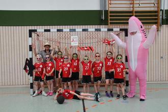 Was war das wieder für ein tolles Handballwochenende bei bestem Wetter! Es wurde gelacht, geschwitzt und gekämpft! Mit dabei waren TSV Einheit Claußnitz, SHV Oschatz, HC Elbflorenz, HV Böhlen, Turbine Leipzig, HSG Rückmarsdorf, VfB Torgau und SC DHfK. Je sechs Mannschaften in den Jugenden E bis D spielten in spannenden Partien um den Sieg beim Cup der kleinen Haie. Nebenbei mussten auch mehrere Stationen eines Vielseitigkeitswettbewerbes absolviert werden. Alle diese Ergebnisse flossen sowohl in die Turniergesamtwertung, als auch in die Einzelplatzierung zum Allround-Talent ein. Geehrt wurden zudem per Abstimmung das Parade-Ass und Handball-Genie des Turniers. In unserer F-Jugend messten sich die Kids in Kleindfeldhandball und Aufsetzerball. Am Ende des Tages gingen alle Spieler*innen mit glücklichen Gesichtern aus der Halle – was will man mehr! Auch unsere kleinsten sportlichen Gäste kamen nicht zu kurz – das Jugendsportabzeichen „Flizzy“ konnte wieder zahlreich verliehen werden. Der Präsident des Stadtsportbundes Leipzig Dr. Uwe Witt schaute sich das bunte Treiben auch gleich noch vor Ort an – danke für diesen Besuch! Und das war natürlich nicht genug – Anhänger basteln, Kinderschminken, Sportspiele und ein Besuch der Freiwilligen Feuerwehr Mölkau ergänzten unser buntes Programm. Für tolle Verpflegung sorgte die Foodmeile von „Lieblingsküche“ sowie unser Kuchen- und Obstbasar. Neben den vielen Fans feuerten auch unserer Maskottchen tatkräftig an!