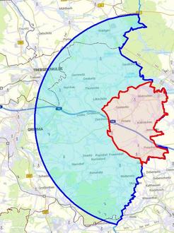 Die Schutzzone des Landkreises Leipzig stellt somit das rot schraffierte Gebiet in Abbildung 1 dar.