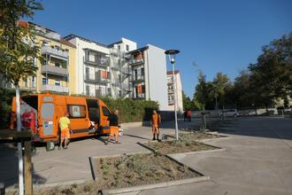 Der Parkplatz wurde mit zwei Mastleuchten ausgestattet, mittig mit drei Bäumen (Gold-Gleditschie 'Sunburst') sowie am Rand zu den Nachbargrundstücken begrünt. In der Mitte der Parkfläche präsentiert sich der „Indianersommer“ – eine Staudenmischung passend zum Straßenbegleitgrün in der Siegfried-Berger-Straße. Durch die Merseburger Firma Wisag Garten- und Landschaftspflege GmbH + Co KG werden noch 200 Narzissen- und 100 Tulpenzwiebeln gesteckt. Die Gesamtinvestition für diese Anlage beträgt 79 000 €.
