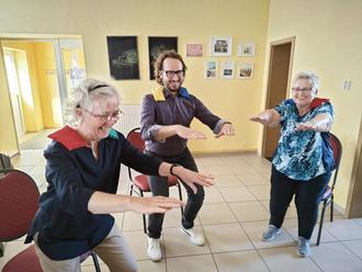 Nach der Führung ging auch schon die Sportstunde los. Unter Anleitung von Dr. Halina Czikowsky waren etliche Seniorinnen mit Spaß und Freude beim Sport dabei. Trainiert wurde der Erhalt von Koordination, Beweglichkeit und der Muskeln. Auch Hilfsmittel wie kleine Bälle und gefüllte Säckchen mit Leinsamen worden für die Steigerung der sportlichen Fertigkeiten eingesetzt. Das sorgte bei allen Anwesenden für besonders gute Laune. Im Anschluss wurde der Kreis durch den aller vier Wochen stattfindenden Seniorennachmittag mit Kaffee- und Kuchen erweitert. Dabei bedankte sich Oberbürgermeister Sebastian Müller-Bahr für den schönen Nachmittag, lobte die starke und aktive ehrenamtliche Tätigkeit und versprach bald wieder vorbeizukommen.