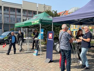 Gemeinsam haben Polizei und Ordnungsamt den Merseburger:innen am 17. September ihren ersten Präventionstag zu den Themen Nachwuchsfahndung und Senioren angeboten, um mit ihnen über diese Themen im direkten Kontakt zu sprechen. Viele Fragen und viele Hinweise gab es. Das städtische Ordnungsamt allein führte 51 Gespräche – nach Einschätzung von Gabriele Triller, Mitarbeiterin im Ordnungsamt, sehr konstruktive Gespräche. Es ging um klassische Themen wie Müll, Verkehrsüberwachung, Unfallgefahr durch Stolperpflaster in der Gotthardstraße, freie Wege für Rollstuhlfahrer, Falschparken, ungenügende Straßenverkehrsbeschilderung und hauptsächlich auch um das Thema Lärm. Am Stand der Polizei waren die Verkehrsprävention und der Einbruchsschutz die Hauptthemen, zu denen Interessierte Hinweise erhielten. Wer diese Möglichkeit verpasst hat, kann am 27. Oktober, dem bundesweiten Tag des Einbruchsschutzes, in der Beratungsstelle des Polizeireviers Informationen dazu erhalten.