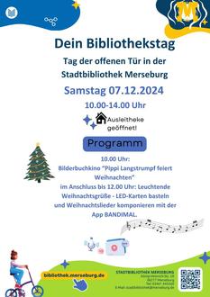 Bereit für ein kreatives Abenteuer? Die Stadtbibliothek Merseburg bietet im Dezember eine besondere Gelegenheit, das vielfältige Angebot der Bibliothek auch am ersten Samstag des Monats zu nutzen. Am 7. Dezember hat die Stadtbibliothek von 10:00 bis 14:00 Uhr geöffnet:
