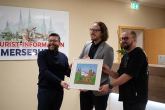 Er ist vor allem für seine „Vogelgezwitscher“ bekannt: Im August 2025 startete die Stadt Merseburg die Zusammenarbeit mit dem Illustrator José Martin Vilchez (Jose_Comics). Im Januar wurden nun die ersten beiden Werke aus dieser Kooperation offiziell vom Künstler an Oberbürgermeister Sebastian Müller-Bahr und Daniel Spielau (Sachgebietsleiter Tourismus / Kulturmarketing) überreicht. José illustrierte nicht nur die Merseburger Rabensage, sondern ließ auch das Vogelgezwitscher-Pärchen, das seine Frau und ihn darstellt, auf den Merseburger Raben treffen.