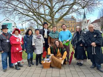 Die Freude über den gelungenen, sehr interessanten Spaziergang an besondere Orte Merseburgs war groß. Das zeigte sich auch an den zahlreichen Münzen und Geldscheinen, die am Ende in der Schürze des Marktweibes landeten. Mit den Spenden wollen die Stadtführer:innen die Anschaffung eines Trinkbrunnens finanzieren.