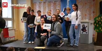 Zur Bekanntgabe des Sieger-Namens kamen anschließend alle Schülerinnen und Schüler sowie die Lehrerinnen und Lehrer in der Aula der Grundschule zusammen. Gemeinsam mit MZ-Redakteur Robert Briest und Schulleiterin Ines Verchow verkündete Oberbürgermeister Sebastian Müller-Bahr den Gewinner: Mit 16 Stimmen Vorsprung auf die beiden zweitplatzierten Namen Krax und Corax (je 56 Stimmen) gewann Merlix (72 Stimmen).